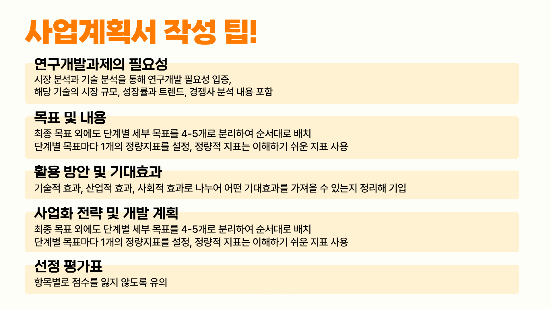 위에 적힌 사업계획서 목차에 따라 직접 사업계획서를 작성할 때 참고할 만한 작성 팁을 가져왔어요. 조금 더 꼼꼼히 알아볼까요?