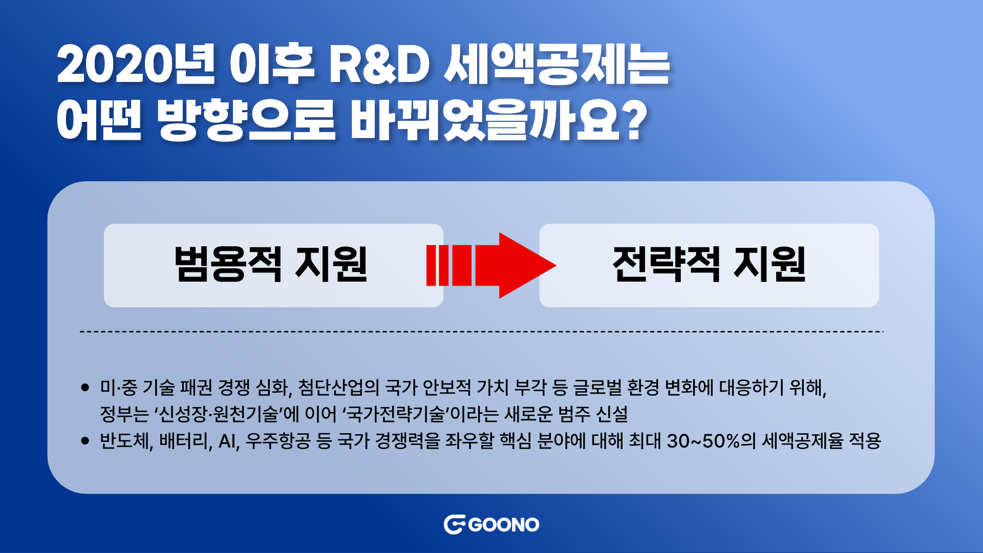 즉, 과거의 R&D 세제 지원이 ‘혁신 촉진’ 중심이었다면, 이제는 ‘국가 경쟁력 확보’와 ‘산업 주권 강화’라는 전략적 목표가 그 중심에 서게 된 것입니다. |