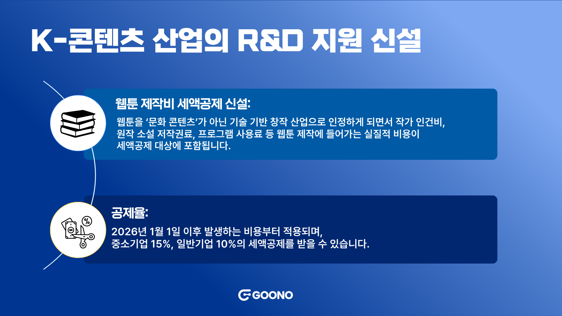 글로벌 시장에서 K-콘텐츠의 영향력이 커지면서, 정부가 웹툰 산업에 대한 세제 지원을 새롭게 도입했습니다. 이제는 웹툰 제작 과정에서 발생하는 다양한 비용도 R&D 세액공제를 받을 수 있게 되었어요. |