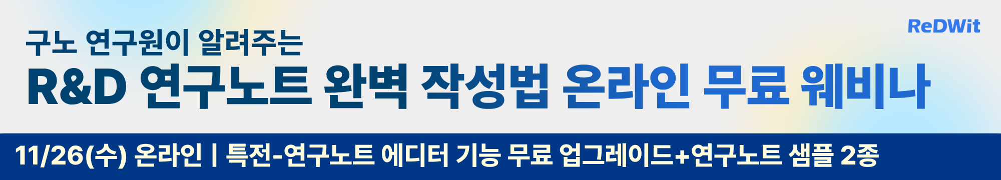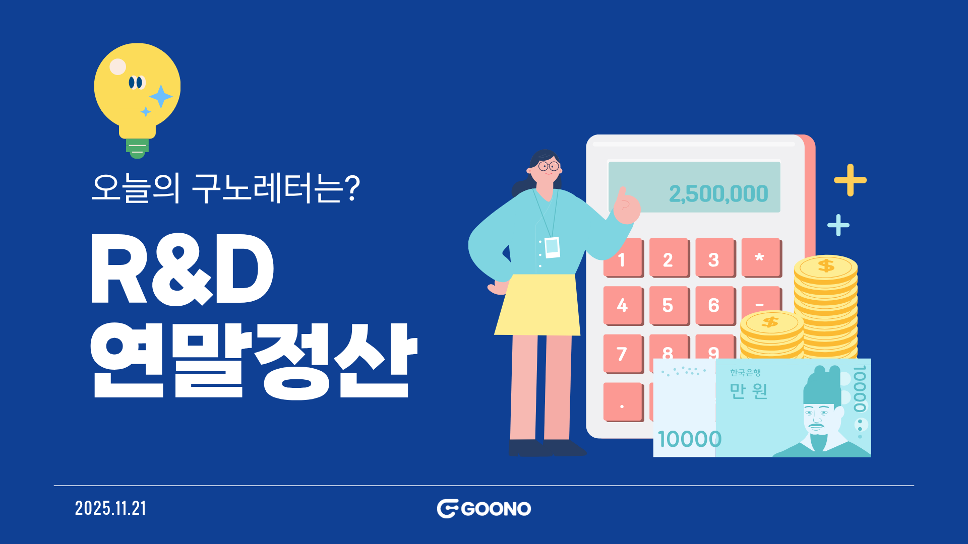 놓치기 쉬운 연말 행정 마감을 한 번에 끝내실 수 있도록, 'R&D 실무자를 위한 연말 정산 체크리스트' 파일을 첨부했어요. 매번 구노레터를 다시 열어볼 필요 없이, 다운로드만 해놓으면 더 편리하답니다! 지금 바로 배너를 클릭하고 체크리스트를 확인해보세요! *다운로드는 12/31일까지 가능합니다. |