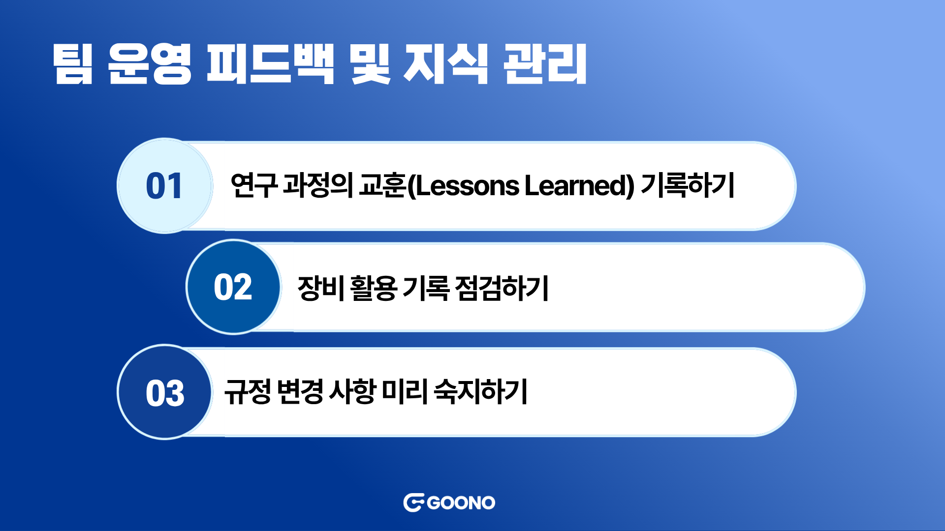팀 운영 피드백 및 지식 관리 (다음 연구를 위한 투자)