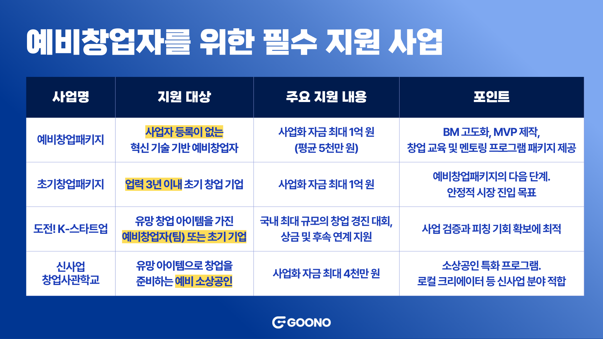 예비창업자의 첫걸음을 위한 필수 지원 사업
