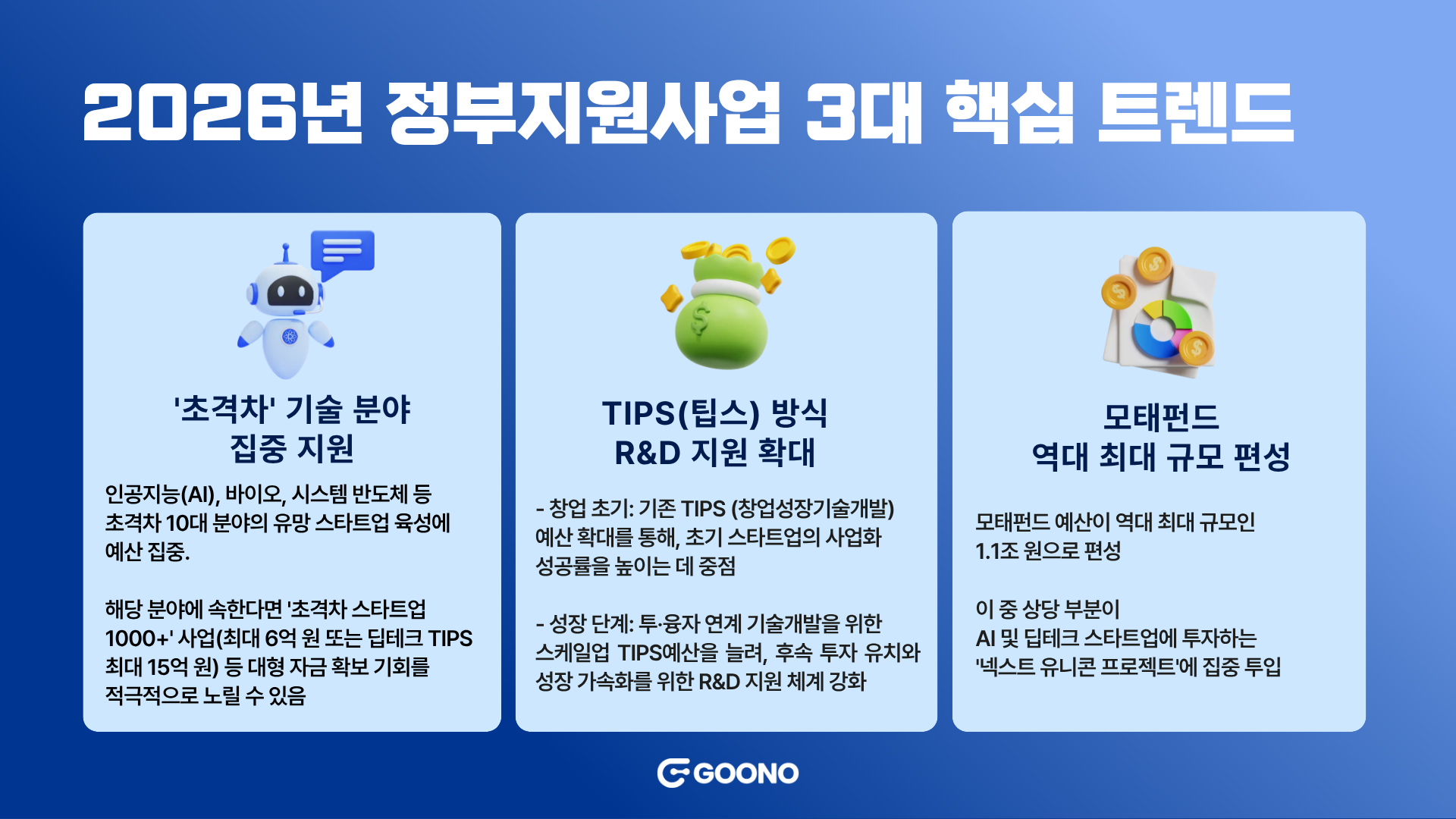 그럼 2026년의 정부지원사업은 어떤 트렌드로 흘러가고, 신청 공고나 정보들은 어디에서 확인할 수 있는지 지금부터 함께 알아볼까요? |