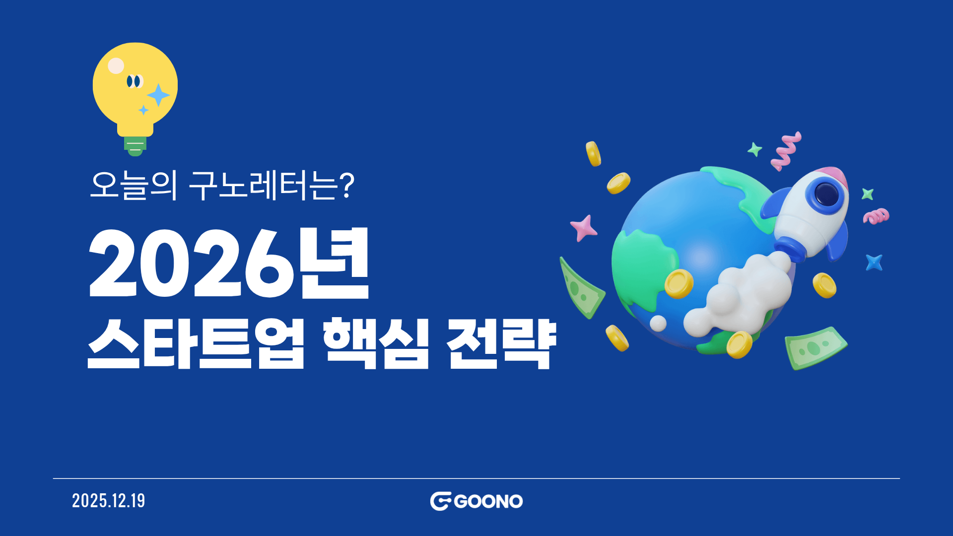 그래서 이번 구노레터에서는 새해를 앞둔 스타트업 창업자분들이 가장 궁금해하는 핵심 질문 4가지를 선정하여, 2026년 성공을 위한 구체적인 방향을 함께 잡아보려고 해요. 그럼 구노레터, 오늘도 힘차게 달려볼까요? |