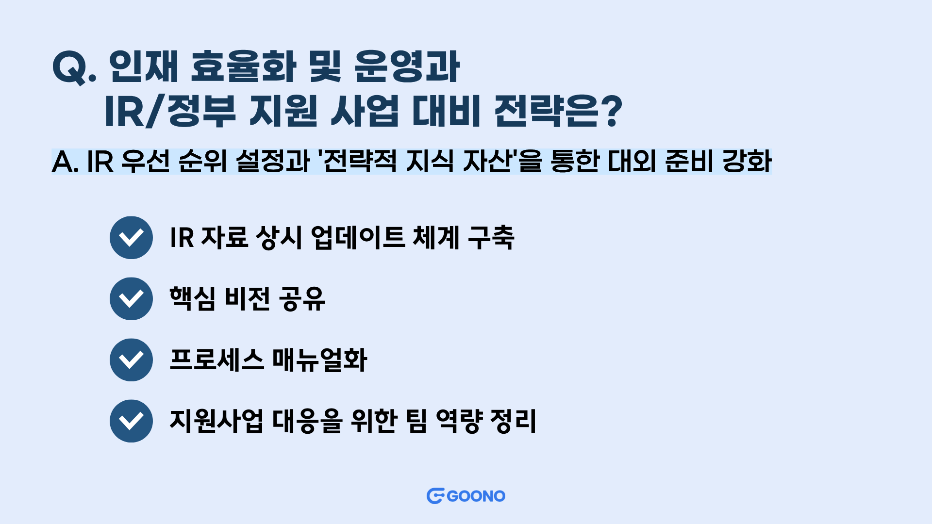 Q. 인재 효율화 및 운영과 IR/정부 지원 사업 대비 전략은? |