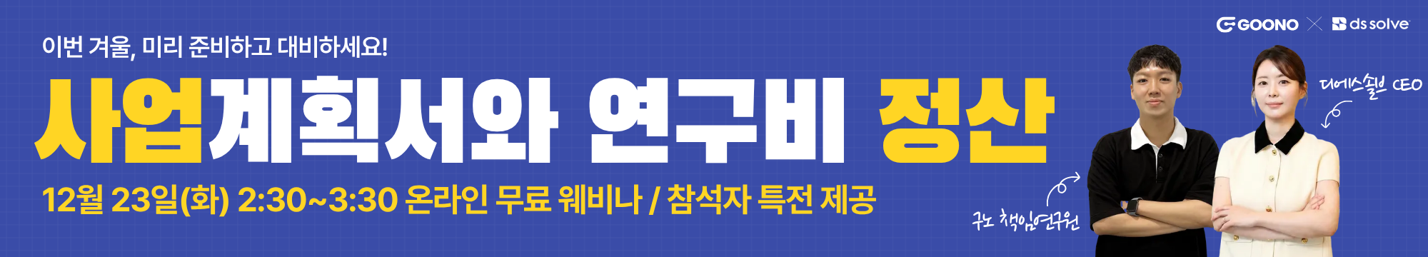 🔥 12/23일 무료 온라인 연구노트 웨비나 오픈! 2026년 정부과제 성공을 위한 사업계획서와 연구노트&빈틈없는 연구비 정산까지! 지금 바로 신청하고 참석자 특전까지 받아가세요! |