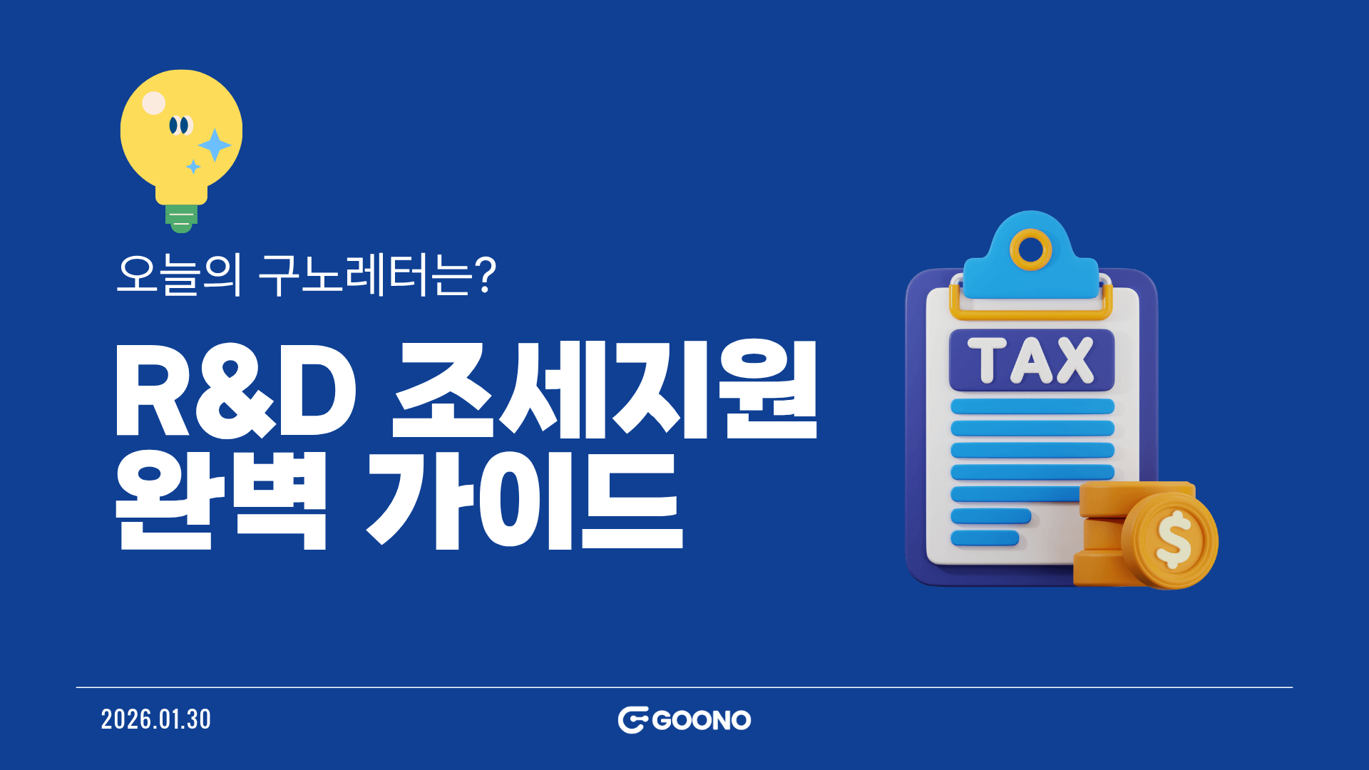 그래서 오늘 구노레터에서는 복잡해 보이지만 알고 나면 기업의 현금 흐름을 바꿀 수 있는 '2026년 R&D 조세지원 제도'의 핵심 내용을 정리해 드리려고 해요. 그럼 바로 시작해볼까요? |