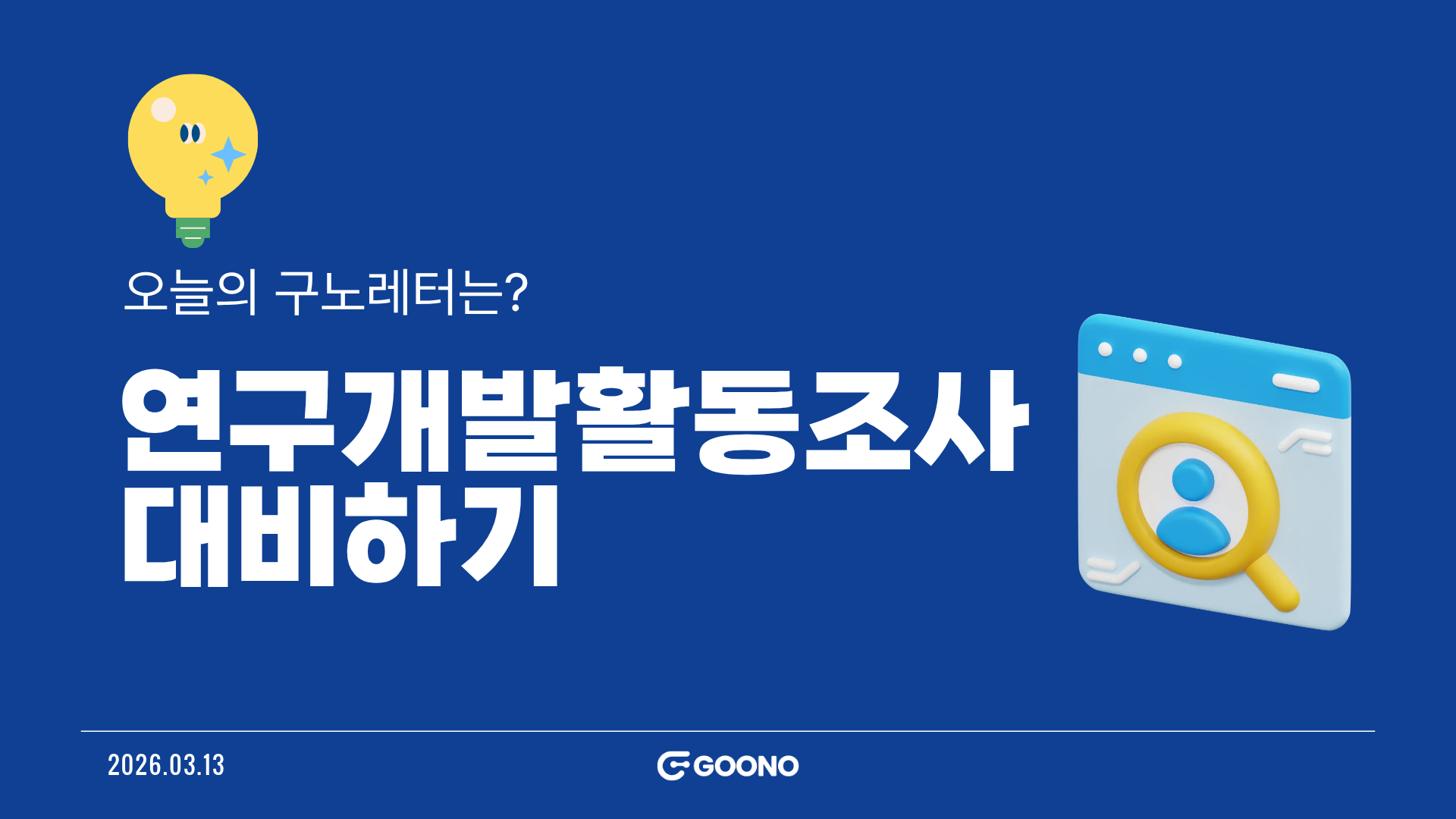 매년 돌아오는 연구개발활동조사, 무심코 지나쳤다간 세액공제 혜택이 사라질 수 있습니다. 안녕하세요, 구노레터 구독자 여러분! 꽃샘추위가 기승을 부리더니 어느덧 창밖에는 봄바랑이 일렁이는 3월입니다. 새로운 시작을 알리는 봄처럼, 우리 연구 현장도 새로운 프로젝트와 과제들로 활기가 넘치고 있을 시기네요.