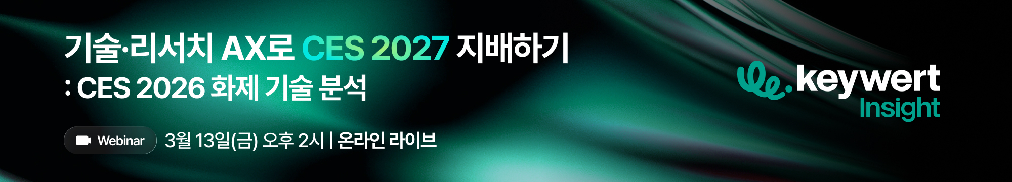 이번 웨비나에서 기술.리서치 AI를 활용해서 CES 혁신 기술을 분석하고 미래 기술 전략을 수립하는 방법이 소개됩니다. 지금 바로 신청하세요! |